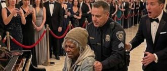 Kaks jõulist turvameest saatsid habrast, kodutut mustanahalist naist välja uhkelt heategevusgalalt. Tema pilk langes