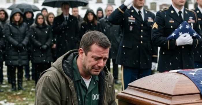 Mootorid mürisesid vaikselt, uksed avanesid. Mees astus välja vanglavormis, terasest ahelad randmetel, pea langetatud. Rahva seas levisid sosinad: see oli tema otsus… tema süü… tema vastutus. Saatja andis teed. Ta peatus kirstu ees, kus lebasid rinnamärk ja müts – nagu lubadus.